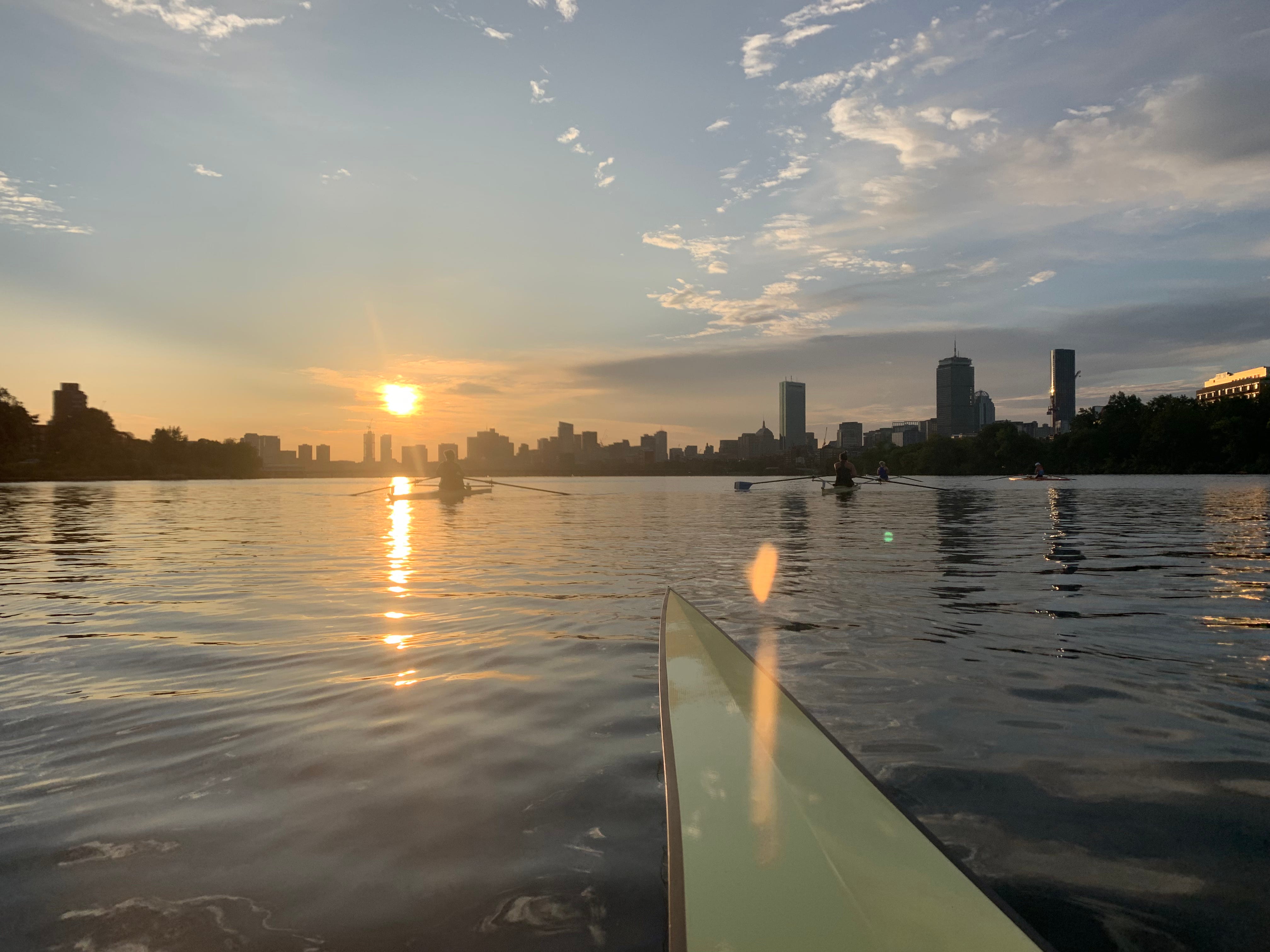 If I’m willing to reject the whole concept of writer’s block, I can also commit to preparing not to choke. And here’s a goal I’ll put out here. I have this habit of panicking on schedule. Yes, when I arrive at a particular section of the Charles River Basin, especially in my rowing single but also in a more stable two-person shell, I panic. It’s become almost routine now. Oh, here we are near the Massachusetts Avenue bridge: commence panic!